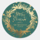 Adesivo Redondo Dourado Teal Verde Natal Eucalyptus Wreath