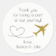 Esses adesivos, projetados por Aestic Journey, apresentam um fundo sólido com um adorável avião e um gráfico cardíaco. São perfeitos para o casamento de destino ou para o casal que ama viagem. Adição perfeita para salvar as datas, use o envelope para um toque especial. Esses adesivos podem ser personalizados para sua ocasião especial e farão o item perfeito para seu casamento, chá de panela, festa de noivado ou qualquer outra jornada especial em sua vida. Adicione seus nomes e data a este design usando as caixas "Editar este modelo" no lado direito do item. Verifique se há mais cores no nosso compro! Você pode mudar as fontes no Zazzle.