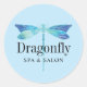 Adesivo Redondo Dragonfly Azul & Aqua Watercolor Elegante