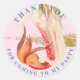 Um sonhador obrigado de cauda de sereia de cor d'água que você vem ao meu adesivo de festa, perfeito para selar bolsas favoritas ou cartas de agradecimento. © Julie McIver