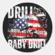 Adesivo Redondo Drill Baby Drill Oilfield American Flag Drilli