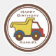 O adesivo colorido do caminhão de lixo acentuou em castanho para favores de festa de aniversário e muito mais. Altere o texto para atender às suas necessidades.