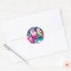 Este adesivo delicioso mostra um par de pássaros bonito cor-de-rosa se amontoando em um galho cheio de flores cor-de-rosa.