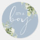 Adesivo Redondo Dusty Blue É Um Chá de fraldas Verde