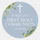 Este elegante adesivo eucalipto verde botânico empoeirado azul, primeiro adesivo de comunhão sagrado, pode ser personalizado com suas informações em tipografia quic. Projetado por Thisnotme©