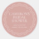Perfeito para chás de noiva de jardim na primavera ou verão, este design elegante apresenta uma borda ondulada de concha em um fundo rosa dusty rose. Personalize estes adesivos de chá de noiva com o nome do seu evento, a data e o ano.