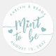 Os adesivos punny do favorito do casamento apresentam "a menta a ser" em um guião emoldurado, marcado com corações. Personalize com seus nomes e data de casamento.