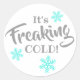 Um adesivo de inverno engraçado para adicionar aos seus pacotes de férias, cartões, cartas ou presentes que expressa seu desdém pelo tempo frio. Três flocos de neve ciano-azuis rodeiam o texto moderno com acentos de script de pincel. Mostrado aqui com um fundo branco, você pode editar a cor de fundo para a cor de sua escolha escolhendo "personalizar" e selecionando uma cor diferente das opções de cor de fundo. Você também pode alterar a cor do texto se desejar. Este adesivo está disponível em dois tamanhos: o pequeno tamanho de 1 1/2 " funciona bem em envelopes ou presentes pequenos. O tamanho maior de 3 polegadas é uma escolha excelente para presentes maiores, favores ou outros projetos de férias ou de inverno. Fique quente!
