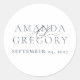 Este adesivo de favoritos chic e elegante apresenta um design sofisticado com os nomes dos casais em uma fonte serif clássica e uma bela fonte de script lendo "E" conectando seus nomes. A paleta de cores azuis pode ser personalizada para as cores do seu casamento ou evento. Estes adesivos são perfeitos para acentuar um envelope, ou bolsa de favor para um casamento elegante ou comemoração de aniversário.
