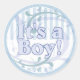 Adesivo Redondo É um anúncio de nascimento com risca azul