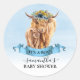 Adesivo Redondo É um Boy Blue Highland Cow Calf Baby Shower