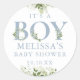 É um adesivo de chá de fraldas de menino com tipografia azul elegante e empoeirada e bonito folhagem botânica. Projetado por Thisnotme©