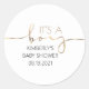 Adesivo Redondo É um Chá de fraldas de Script Dourado Clássico, re