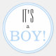Celebre a chegada do seu novo bebê e mande anúncios de bebê com este É um Menino! Clássico Redondo. Esta design apresenta o texto "É um menino!" em letras preto e azul-bebê com um anel duplo de azul ao redor do texto.