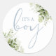 Adesivo Redondo É um menino Dusty Blue Greenery Favor de Chá de Be