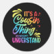 Frase Quirky conectando-se com laços familiares, transmitindo compreensão única entre primos.
