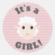 Desenho de uma ovelha fofa com texto curvo lendo "É uma MENINA!"