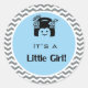 É uma garota azul, cinza e adesivos brancos de fevron. anúncio de nascimento de bebê, chá de fraldas.