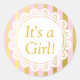 Adesivo Redondo É uma garota, rosa e Dourada e um bebezinho