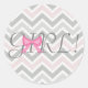 Estes adesivos bonitos decorados com um fundo cor-de-rosa e fatião de cinza com um arco serão excelentes para o seu próximo chá de fraldas!