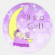 Adesivo Redondo É uma Menina, Bebê Menina na Lua Roxa