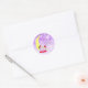 É uma Menina, Chamada de Bebê ou Anúncio de Nascimento Adesivo Clássico Redondo para selar convites ou anúncios de nascimento. Doce bebê caucasiana com cabelo castanho escuro dormindo na lua com fundo lavanda estelar.