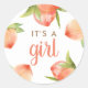 Adesivo Redondo É uma menina, Chá de fraldas de pêssego.