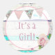Adesivo Redondo é uma menina, novo bebê, anúncio de nascimento,