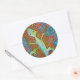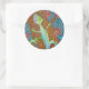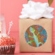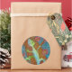 Vibrante e groovy gecko sobe em uma laranjeira contra um céu turquesa. A imagem é cheia de elementos mosaicos, e todo o original de 18" x 24" foi criado com aquarelas e tinta. Sombreamento sutil e elementos de brilho dourado 3D fazem com que este pequeno pop! Divertido e engraçado!