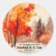 Um adesivo de scriptagem de aspas inspirador retrata uma bela paisagem de cor d'água de outono, incluindo árvores com folhas coloridas vermelhas e laranja do outono. Ele apresenta a Bíblia Verse Eclesiastes 3:11, "Ele fez tudo bonito em seu tempo."