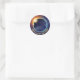 Comemore este raro evento em estilo. Este design único adesivo apresenta uma ilustração de um eclipse solar total em tons coloridos de azul-da-noite, ouro amarelo e aqua. O texto curvo em amarelo ouro envolve a ilustração. O texto é facilmente personalizável para o seu próprio texto: basta usar os modelos fáceis e fornecidos. Excelente de correspondência, favoritos para festas ou transmissão de eventos.