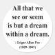"Tudo que vemos ou parecemos é apenas um sonho dentro de um sonho." - Edgar Allan Poe.