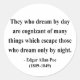 "Os que sonham ao dia estão conscientes de muitas coisas que escapam daqueles que sonham apenas à noite." - Edgar Allan Poe.