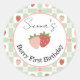Adesivo Redondo Editable Strawberry Gingham 1st Birthday Favor