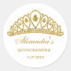 Efeito brilhante moderno e elegante do ouro princesa tiara Quinceanera adesivo redondo A cor de fundo pode ser alterada