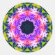 Mandala colorida (azul, verde, laranja, rosa, roxo, etc.) com muitos detalhes sobre um adesivo redondo.