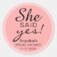 Adesivo Redondo 'ELA DISSE SIM' Chá de panela Pink Envelope favor