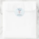 Este design de adesivo elegante apresenta uma ilustração vintage inspirada, em vermelho, de uma lagosta em um fundo listrado azul claro.
