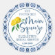 Um chá de panela bonito a favor de adesivo decorado com limões e azulejo azul italiano. Sticker disse, ela encontrou seu principal aperto, com o nome das noivas e a data do chá. O chá de panela perfeito favorece o adesivo. Projetado para você pelo Blackberry Boulevard.