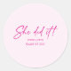 Adesivo Redondo Ela fez uma Festa de formatura rosa mínima