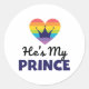 Adesivo Redondo Ele é o meu príncipe LGBTQ Rainbow T Shirt para Ga