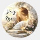 Este belo adesivo/selo de Páscoa apresenta uma representação radiante do túmulo vazio de Jesus Cristo, simbolizando Sua ressurreição. A entrada de pedra é enfeitada com flores florescentes, e raios de luz ouro emanam de dentro, criando um brilho celestial. O texto "Ele é Risen!" é escrito elegantemente em escrita negra, celebrando a alegre ocasião da Páscoa. Esta design é perfeita para adicionar um pouco de fé e inspiração às suas saudações e decorações Páscoas.