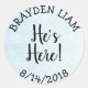 Adesivo Redondo Ele está aqui, novo anúncio do bebê