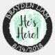 Adesivo Redondo Ele está aqui, novo anúncio do bebê
