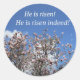 Pink Blossomed dogwood e cena do céu com a mensagem Páscoa precioso aos cristãos em todo o lado: Ele está levantado! Ele se levantou mesmo!