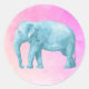 Adesivo Redondo Elefante Azul Claro em Aquarelas Rosa Sonhadoras