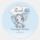 Obrigado seus hóspedes com um favor com este adorável bebê elefante, elefante fofo em balão azul de ar quente com nuvem branca e fundo azul e branco de gradiente.