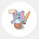 Adesivo Redondo Elefante como cozinheiro com Rolling pin & Dough