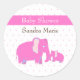 Adesivo Redondo Elefante Rosa Simples Chá de fraldas De Bebê Simpl