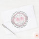 Adesivo Redondo Elefantes Rosa Gêmeos Cinza Chevron Branco Obrigad